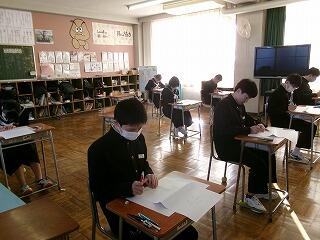 中3生徒は、入試の本番をイメージして、筆記用具の確認をし、問題用紙の諸注意を読んでから始めていました。