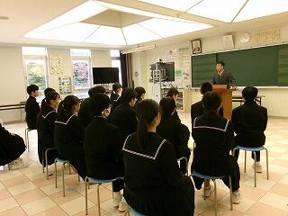 校長講話では、この季節にちなみ、葉が紅葉する(色づく)理由(物事には道理があるということ)や、日本一になったソフトバンク所属する近藤健介選手のお父様が書かれた本「世界一の侍選手の育ち方」の中から、野球部の3原則「『先のこと、周りのこと、相手の立場のこと』を考える」等を紹介されました。今、大切だと思ってやっていること、意識はしていないが学校生活の中で実行していることが、「将来生きてくることは必ずある」といった話がありました。