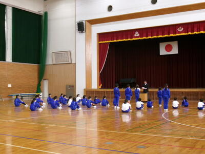 さらに、生徒指導の先生からは、10月の生活アンケートを振り返って、「友達に手伝ってもらって嬉しかった」「部活中に1番声を出している」「朝、体育の準備を率先してできた」など、ポジティブメッセージの紹介があり、11月に向けて気持ちを新たに、もっと充実した生活を送ろう、といった話もありました。
