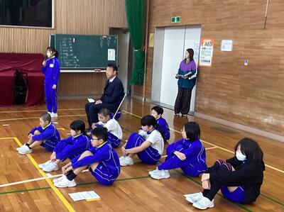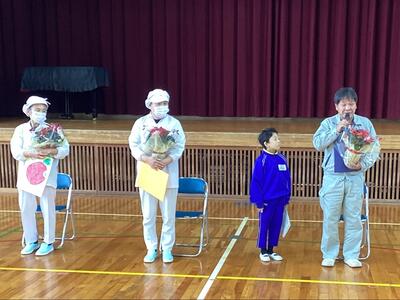 子どもたちからお花と寄せ書きのプレゼントを送った後、一言ずつお話をしていただきました。